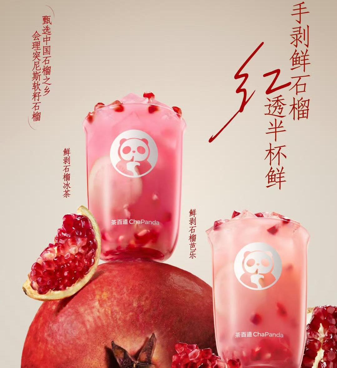 此次新品选用的突尼斯软籽石榴产自中国石榴之乡四川会理,茶百道会从中甄选籽小、色红,糖度要求在14度以上的石榴作为原料。